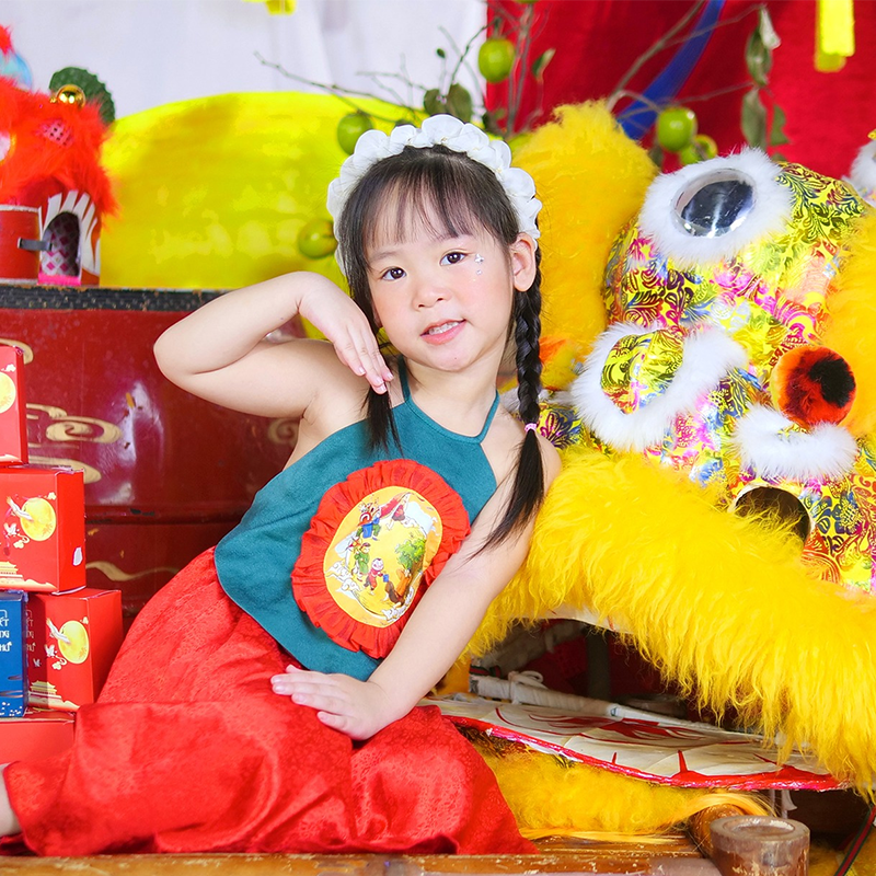 Không gian lễ hội được trang trí với những gam màu vàng – đỏ – nâu ấm áp, tạo nên một bức tranh mùa thu rực rỡ. Các bé háo hức diện những bộ trang phục xinh xắn, cùng nụ cười trong trẻo làm bừng sáng cả góc trời thu