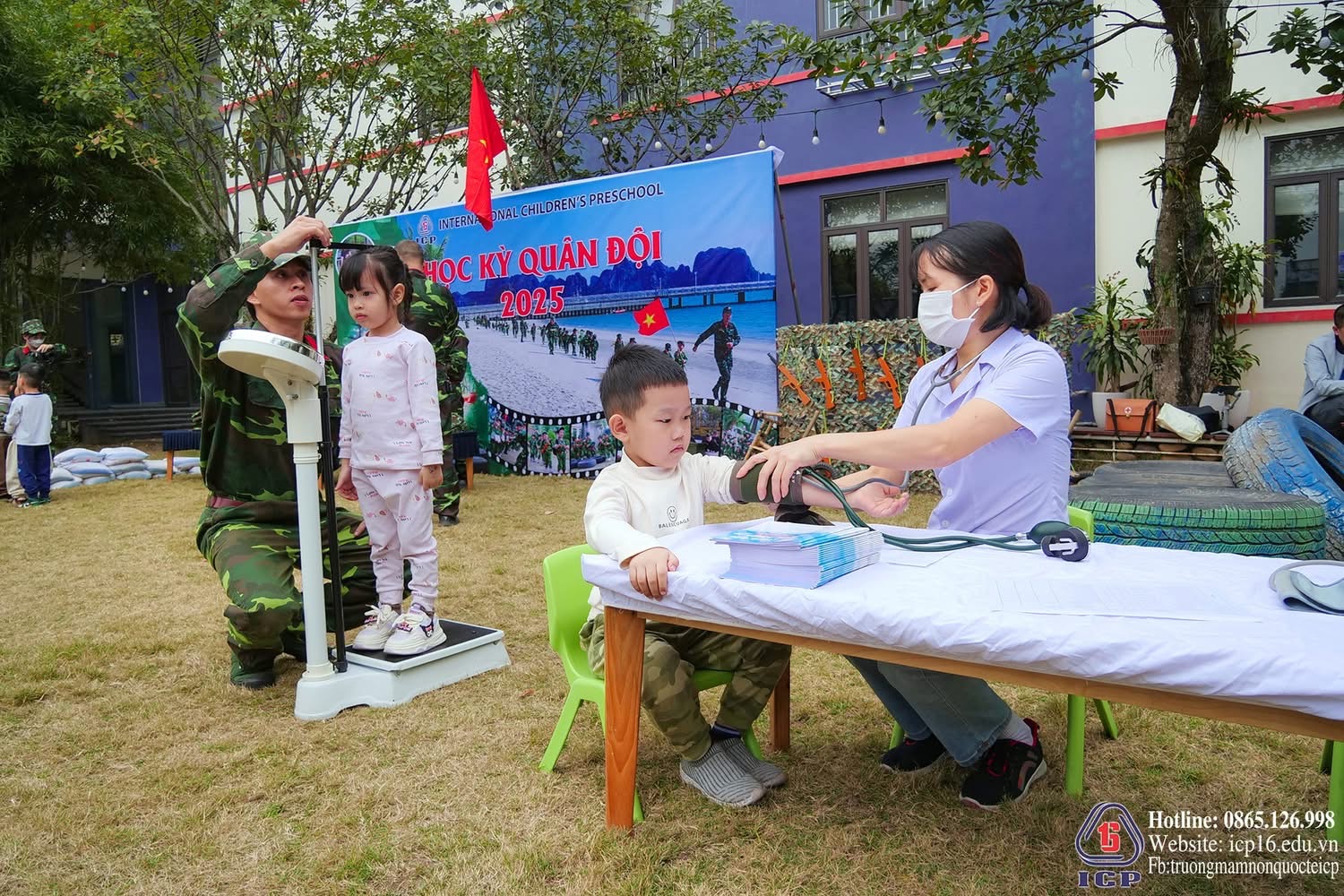 Các chiến sĩ nhí được khám sức khỏe toàn diện: đo chiều cao, cân nặng, huyết áp, kiểm tra thể lực… nhằm đảm bảo an toàn xuyên suốt chương trình.
