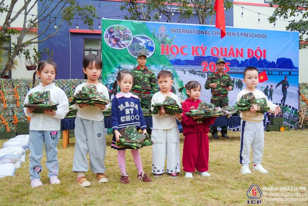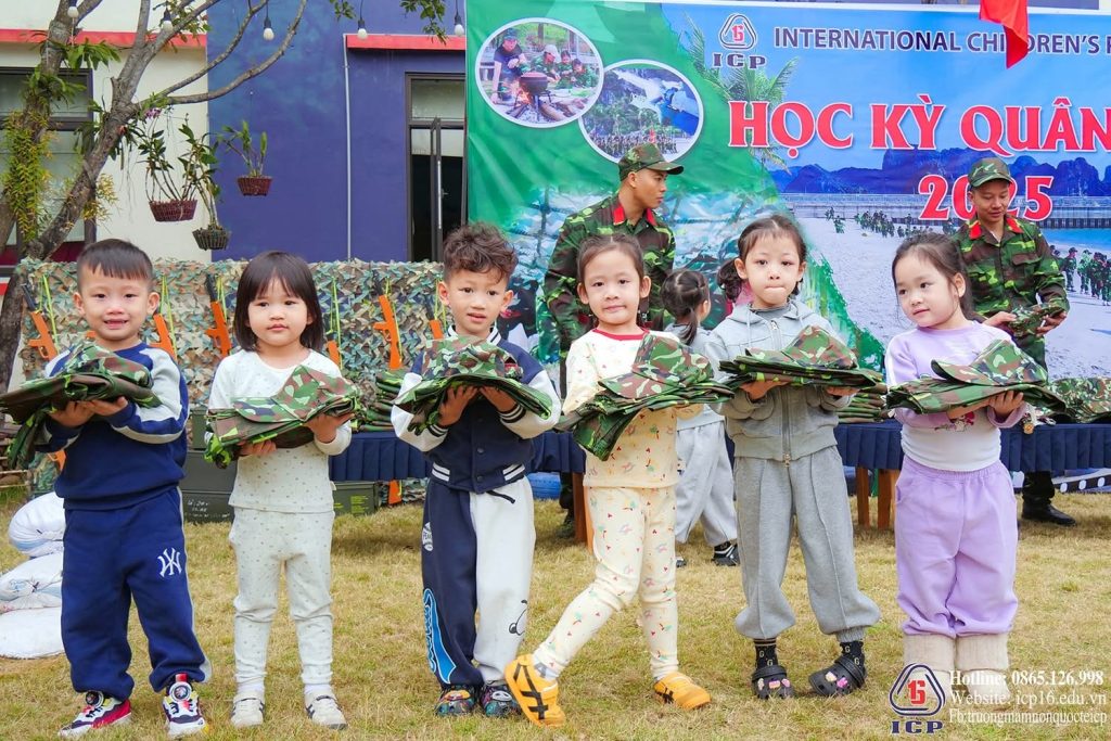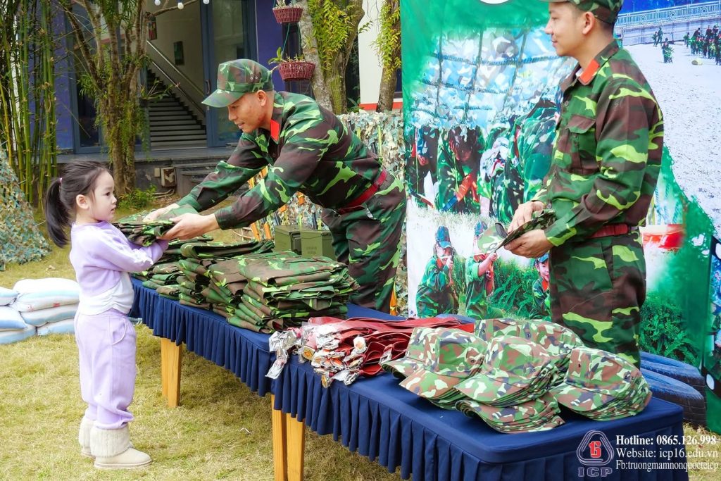 Các con được nhận quân phục, mũ, khăn quàng và bảng tên. Khoảnh khắc khoác lên người bộ quân phục đầu tiên luôn là khoảnh khắc đáng nhớ nhất.